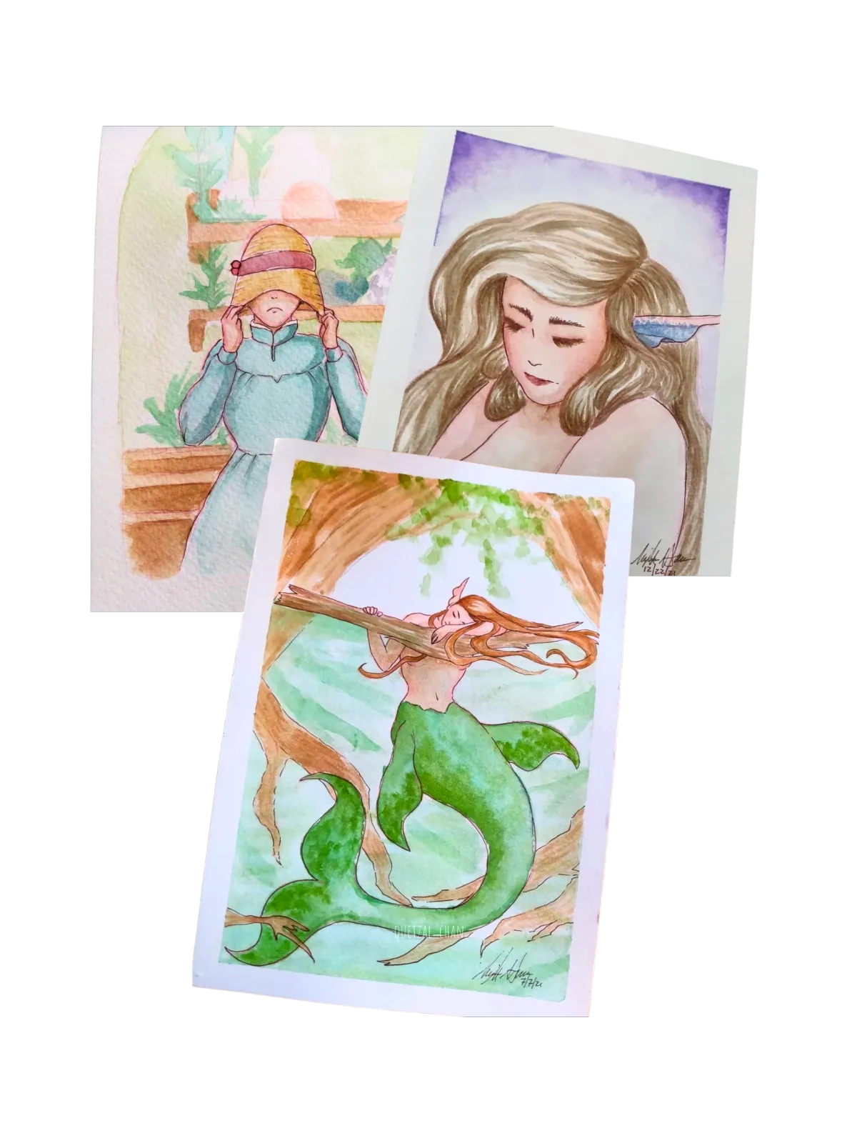 "I love the water color art and how the colors are soft, but stand out. I'm excited to see what other paintings I can collect from this artist ♡"
